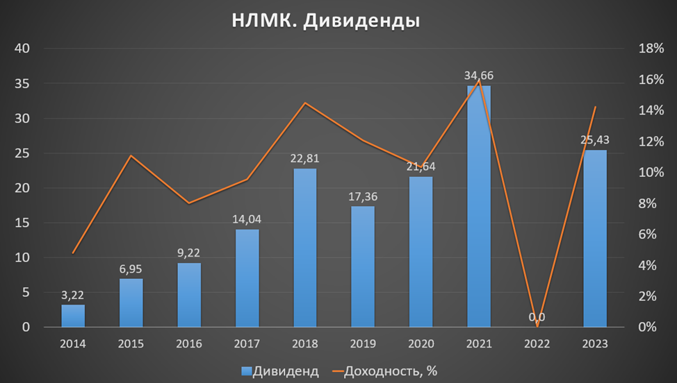 За 2024 год НЛМК ориентировочно заработал 13,5₽, что составляет 10,7% доходности к текущей цене акции.
