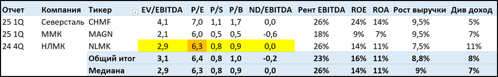 НЛМК оценена средне относительно других металлургов.