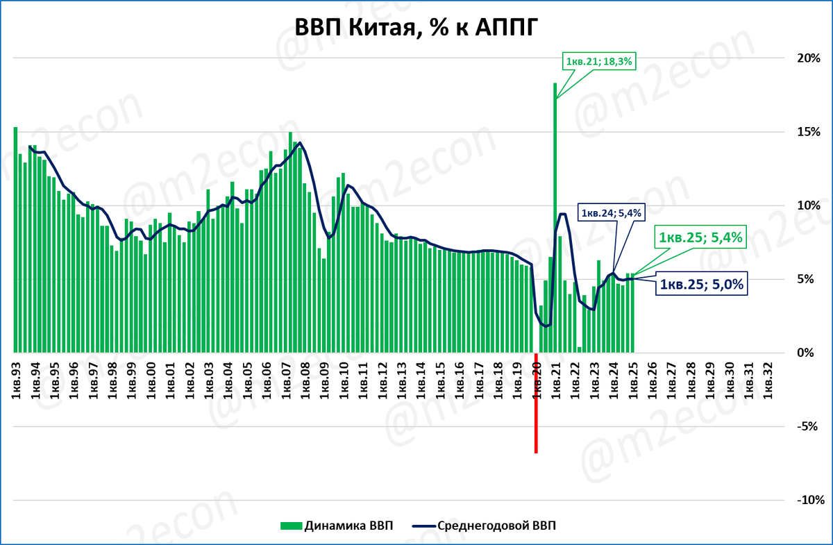 Реальная денежная масса в Китае по итогам апреля выросла на 8,1% к апрелю 2024 года. Это лучший темп роста с марта 2024 года, за последние 13 месяцев