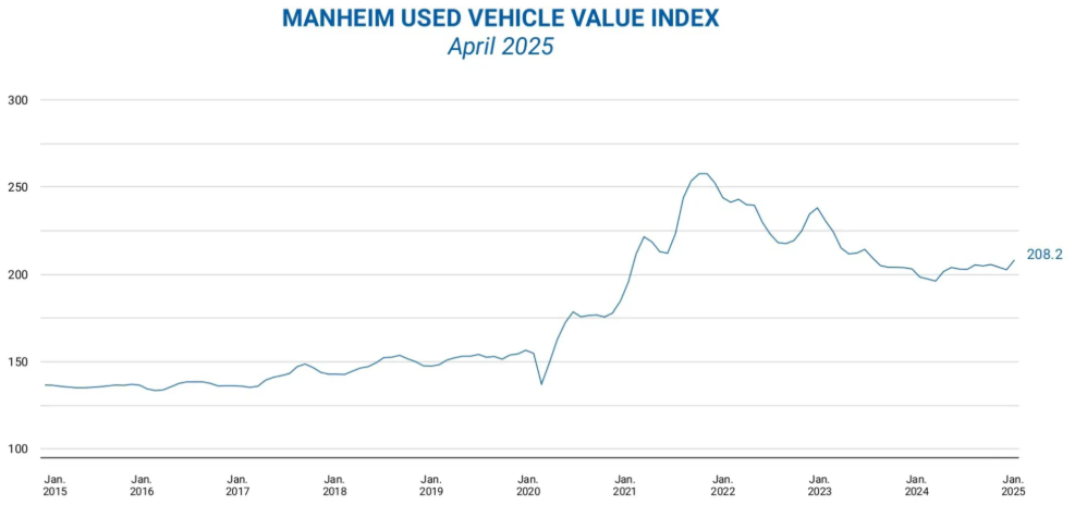 При этом в апреле 2025 года продолжился рост оптовых цен на подержанные автомобили на фоне изменений состава парка, пробега, а также сезонных факторов. Так, индекс стоимости подержанных автомобилей Manheim (MUVVI) поднялся до 208,2, что на 4,9% выше, чем в апреле прошлого года, и на 2,7 % выше, чем в марте 2025-го. Это максимальное значение индекса с октября 2023 года. Ожидается, что к концу 2025 года индекс Manheim умеренно вырастет по сравнению с предыдущим годом, что свидетельствует о стабильном повышении стоимости подержанных автомобилей.