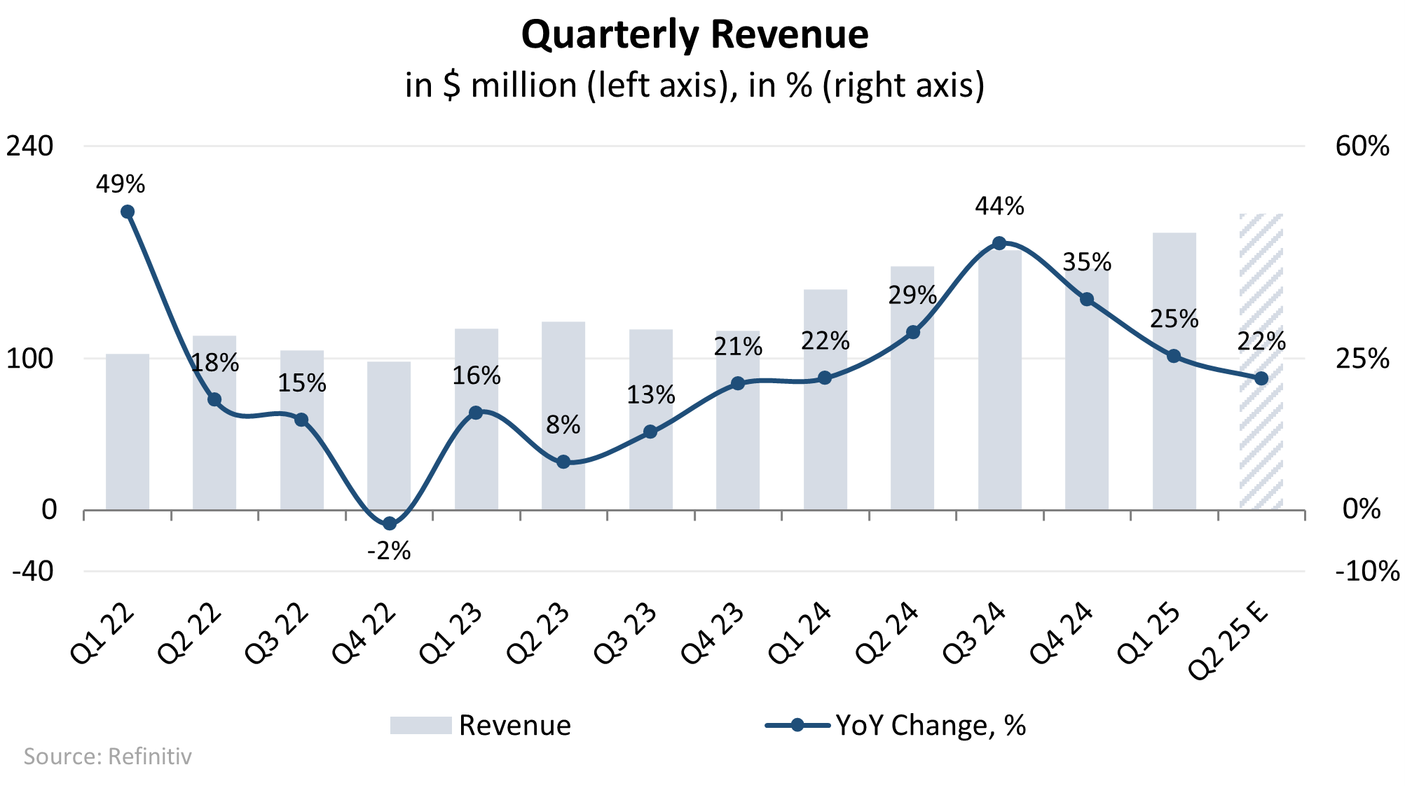 Скорректированный показатель EBITDA за 1-й квартал 2025 года составил $14 млн — в 3,5 раза больше по сравнению с $4 млн годом ранее. Маржа по EBITDA выросла на 500 базисных пунктов, чему способствовало строгое управление операционными расходами. Чистый убыток по GAAP сократился с -$20 млн до -$15 млн, тогда как чистая прибыль не-GAAP выросла с $1 млн до $7 млн.