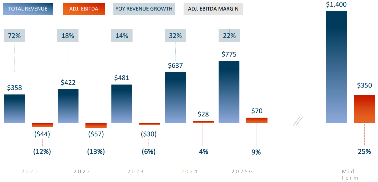 Ожидается, что эти усилия приведут к значительному повышению рентабельности, а скорректированная маржа EBITDA вырастет с 4% в 2024 году до 9% в 2025 году и далее до 25% в среднесрочной перспективе.