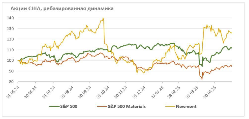 Newmont прошла через консолидацию приобретенной в 2023 г. австралийской Newcrest Mining и продажу избыточных активов, что отразилось на операционных и финансовых результатах 2024 г. и 1К 2025, которые нельзя считать показательными и которые после завершения расчетов по сделкам со второй половины года вернутся к нормальному состоянию. Акции Newmont в этот период практически пропустили весь рост цен на золото, только в последнее время возобновилась их корреляция. На наш взгляд, сегодня рынок адекватно оценивает стоимость компании с учетом прогнозов и ожиданий.
