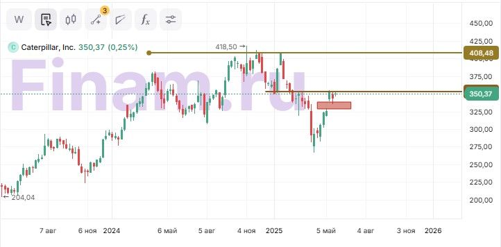 Средневзвешенная целевая цена по выборке аналитиков с исторической результативностью прогнозов не менее среднего составляет, по нашим расчетам, $365 (+4,5% к текущему уровню), рейтинг — 3,06 (значение 5,0 соответствует рейтингу Strong Buy, а 1,0 — Strong Sell). В том числе оценка целевой цены акций CAT аналитиками Evercore составляет $373 («Держать»), D.A. Davidson & Company — $331 («Держать»).