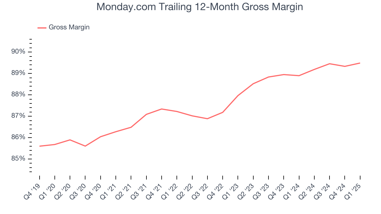 В I квартале рентабельность валовой прибыли Monday.com составила 89,8%, что соответствует показателям аналогичного квартала прошлого года. При увеличении масштаба маржа компании за весь год оставалась стабильной в течение последних 12 месяцев, что говорит о том, что её производственные затраты были стабильными, и компания не испытывает давления в плане снижения цен.