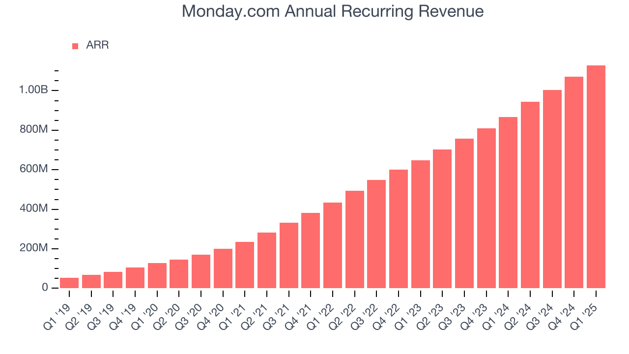 В I квартале ARR компании Monday.com составил $1,13 млрд, а за последние 4 квартала её рост был просто фантастическим – в среднем на 32,4% по сравнению с предыдущим годом. Этот показатель соответствует общему росту продаж и показывает, что клиенты готовы делать многолетние ставки на технологии компании. Рост компании также делает Monday.com более предсказуемым бизнесом, что способствует повышению её стоимости, поскольку инвесторы обычно предпочитают компании с повторяющимся доходом.