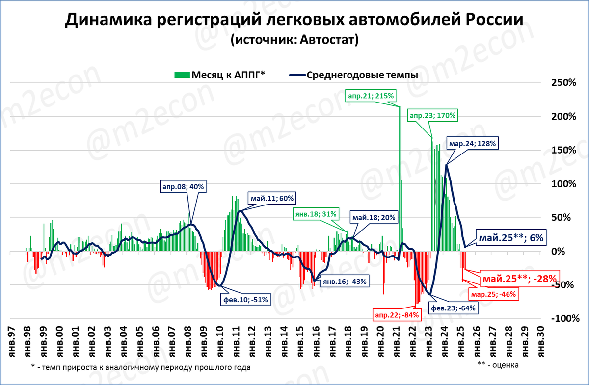 Падение по сравнению с апрелем (-25%) немного ускорилось.