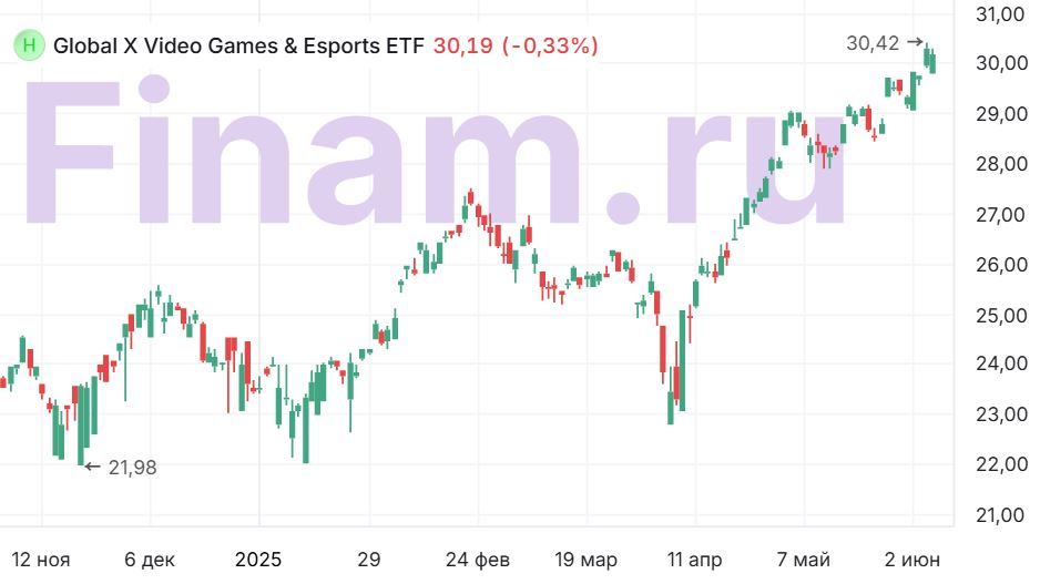 С начала года акции Global X Video Games & Esports ETF демонстрируют сильный рост, почти на 30%. Долгосрочные перспективы сектора остаются положительными, однако после сильного ралли имеет смысл рассмотреть фиксацию прибыли на фоне сохраняющихся геополитических рисков и высокой доходности гособлигаций США, а также возможного влияния тарифов на индустрию гейминга.