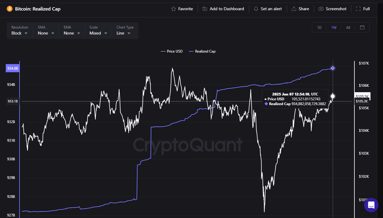 Реализованная капитализация биткоина. Данные: CryptoQuant.