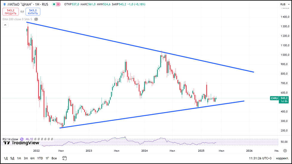 C 03.04.2025 года стартовали торги под новым тикером CNRU. Текущие котировки примерно на 60% ниже цен IPO, прошло в ноябре 2021 года. С начала 2025 года динамика околонулевая.