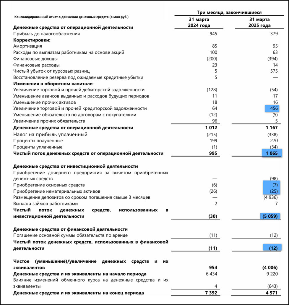 Денежные потоки за 1Q 25: