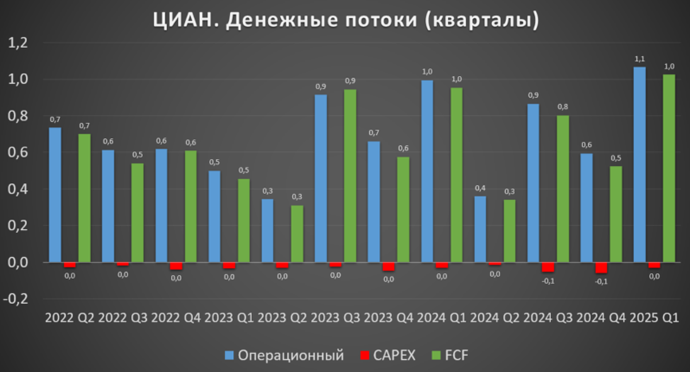 По сути, ЦИАН не вкладывает больших денег в разработку новых продуктов, а текущие продукты генерируют положительные денежные потоки даже в сложное время.