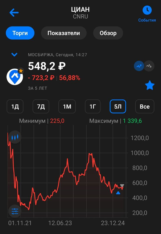 Не так давно я поспекулировал на акциях ЦИАН, заработав за 1,5 месяца 8%. Продал из-за того, что не очень понравился последний отчет, и цена акций подошла к справедливым отметкам. На данный момент у меня нет этих акций портфеле.
