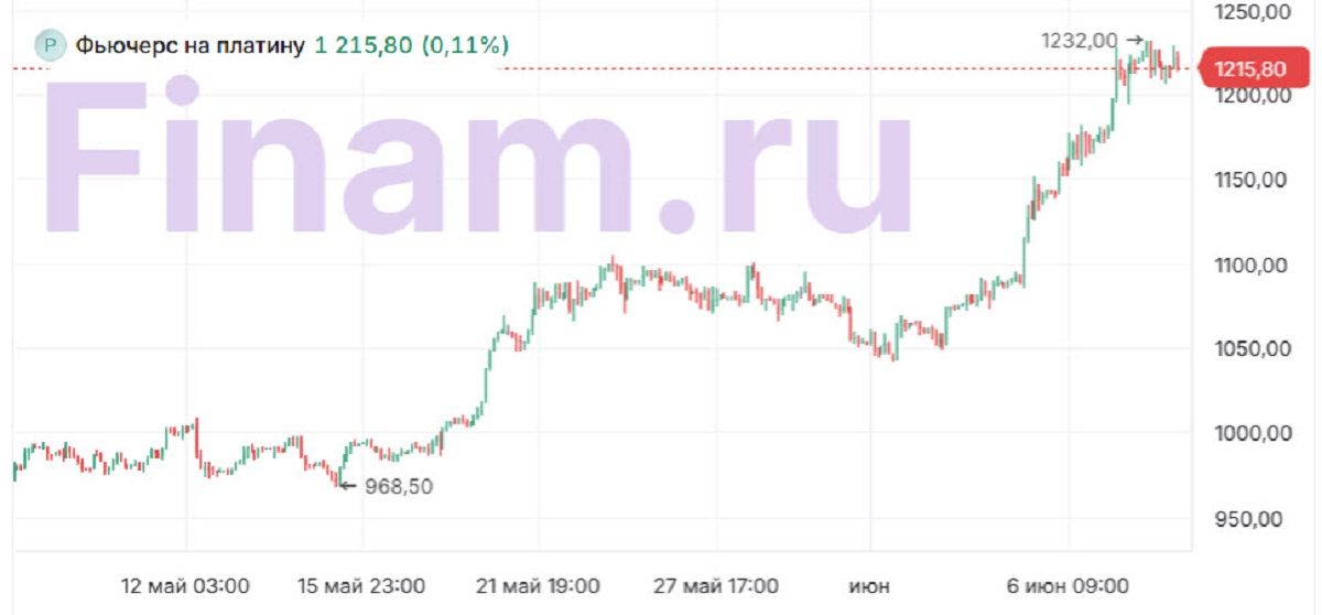 В последние дни наблюдается резкий рост цен на драгметаллы, в первую очередь на серебро, платину и палладий. Так, стоимость серебра с начала июня прибавила около 11%, накануне оно побывало выше уровня 37 долларов за унцию впервые с 2012 года. Платина за тот же период подорожала примерно на 17% и находится теперь в районе 1220 долларов за унцию. Палладий вырос в цене на 11%, сейчас находится около 1080 долларов за унцию, а накануне максимально повышался до 1109. Золото в последнее время остается в боковике в районе 3300-3400 долларов, однако оно сильно подорожало в предыдущие месяцы. Сегодня оно стоит около 3360 долларов, рост с начала года составляет примерно 27%. Кроме того, более медленную восходящую динамику показывает медь, которая подросла на 2% с начала июня и на 7% с начала мая. Она стоит около 9850 долларов за тонну.