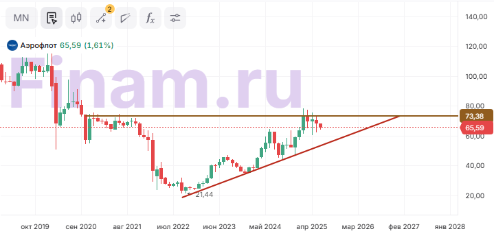 Наш рейтинг по акциям «Аэрофлота» — «Покупать», целевая цена — 78,71 руб. за бумагу, потенциал роста — 20,4%.