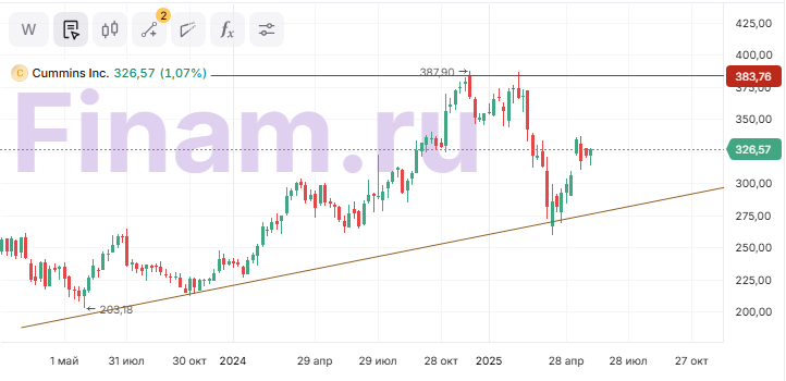 Текущий рейтинг по акциям Cummins — «Покупать». Целевая цена составляет $388,7 за акцию, апсайд — 19,4%