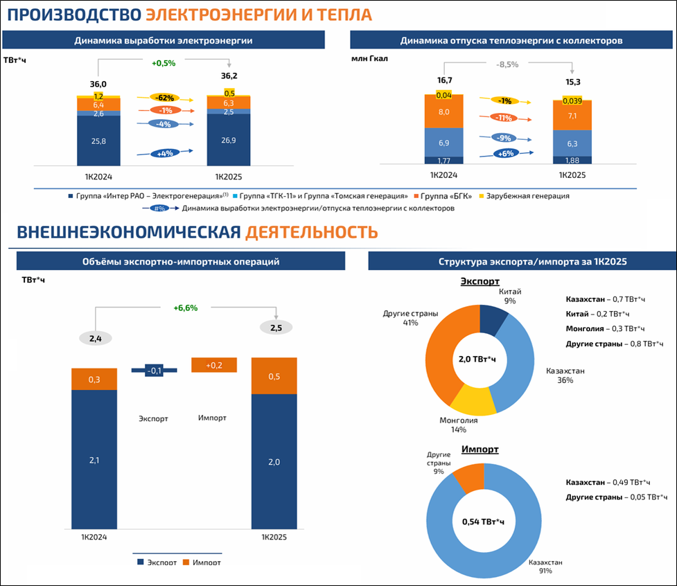 Выработка электроэнергии 36,2 млрд кВт*ч (+0,5% г/г);