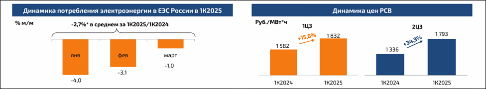 В первой ценовой зоне +16% г/г. Несмотря на снижение электропотребления в России, цены выросли из-за снижения выработки атомными и гидро электростанциями, а также индексация цен на газ.