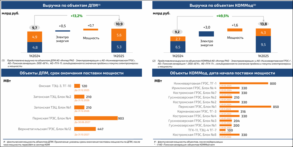 Выручка по объектам ДПМ за первый квартал 11 млрд (+13% г/г). Программа ДПМ постепенно финиширует. Срок окончания последних объектов у Интер РАО 2027 год.