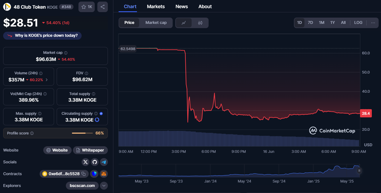Представители стоящей за KOGE команды 48 Club не прокомментировали внезапное снижение цены токена — лишь анонсировали торговое соревнование.