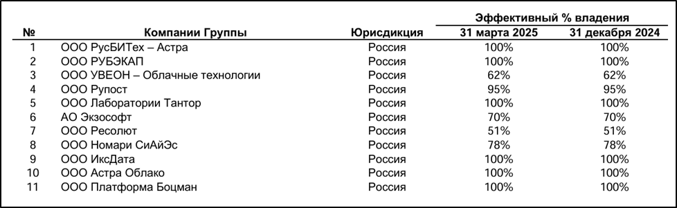 В Группу входят 11 основных компаний. Контролирующий акционер Фролов Д.В. с долей 64,9% акций. 4% акций находится на балансе дочерних компаний (для программы мотивации). Free Float 15,6%.