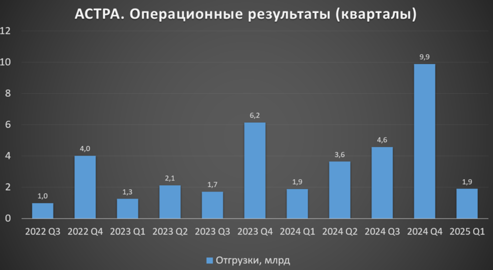 Отгрузки в 1Q 2025 выросли всего на 3% г/г. Но нельзя забывать про сезонность: на первые полугодия обычно приходится менее трети отгрузок, а на четвертые кварталы – около половины.