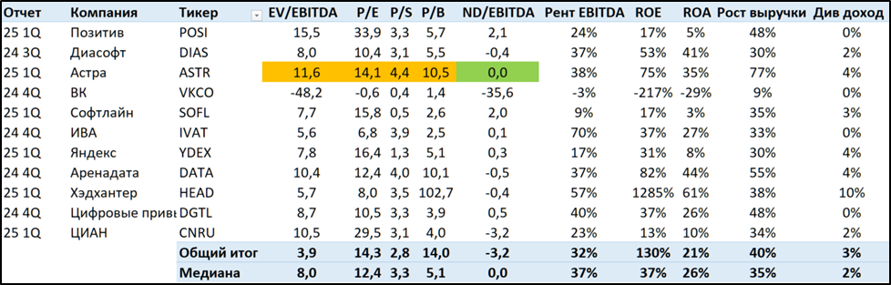 Астра оценена в среднем подороже большинства компаний сектора IT, правда, и рост выручки здесь пока максимальный. Если сбудется прогноз компании, то fwd P/E 2026 ≈ 7. Что в целом совсем немного, учитывая, что рост продолжится и дальше.