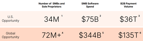 - В настоящее время клиентами Bill являются лишь 1,44% из 34 млн малых и средних предприятий США, что открывает перед компанией масштабный целевой рынок.
