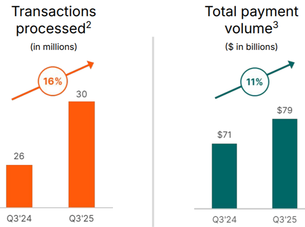 В 3-м квартале 2025 финансового года TPV вырос на 11%, достигнув $79,4 млрд.