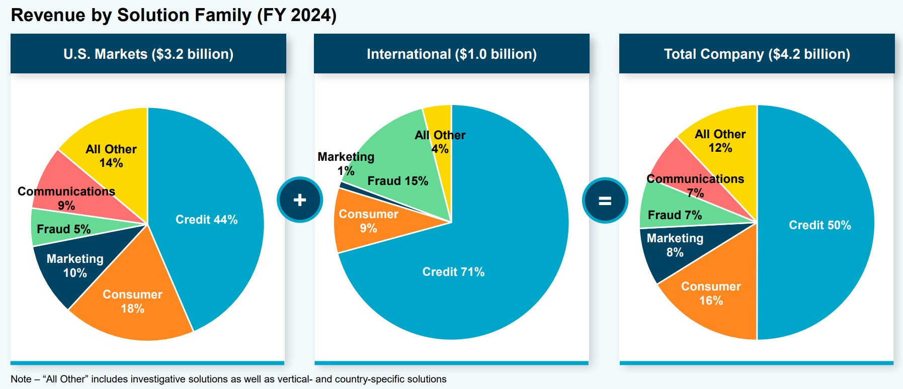 Используя экспертизу в управлении рисками и идентификации личности, TransUnion активно развивает смежные направления — верификацию, борьбу с мошенничеством и маркетинговую аналитику. Эти услуги позволяют расширить целевой рынок компании. Сегодня решения TransUnion востребованы у крупнейших банков, эмитентов кредитных карт, альтернативных и POS-кредиторов, BNPL-компаний, автокредиторов, автостраховщиков, телеком-операторов, ритейлеров, медиакомпаний, а также государственных структур на всех уровнях.