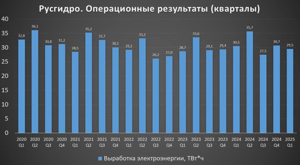 выработка электроэнергии составила 29,5 ТВт*ч (-3% г/г).