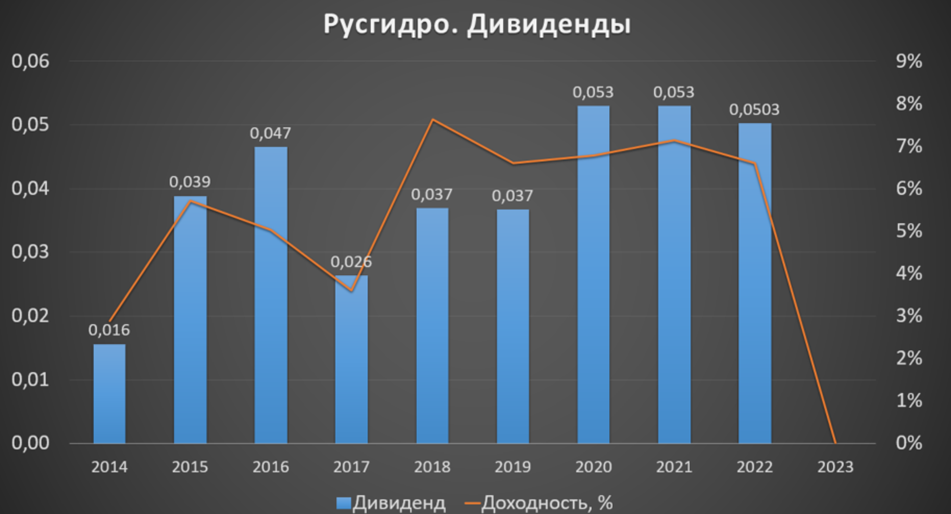 Ранее я неплохо зарабатывал на акциях РусГидро. Но из-за большого долга, на данный момент у меня их нет в портфеле.