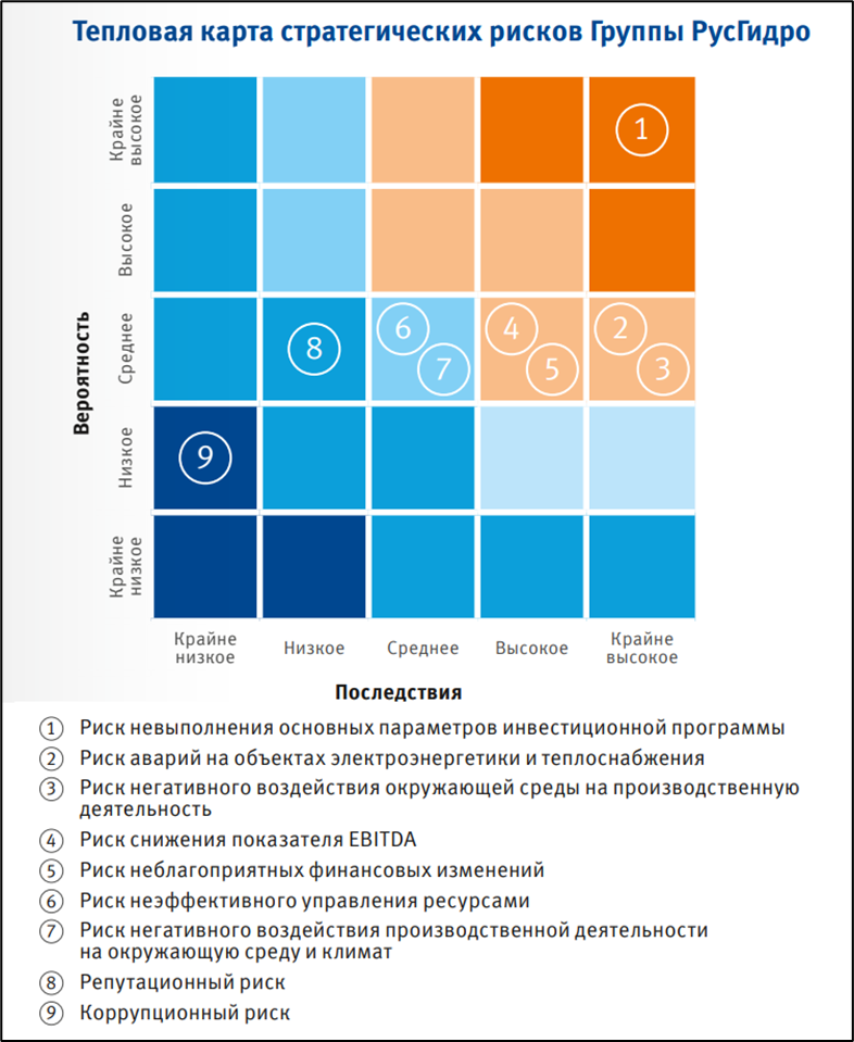 Аварии. У РусГидро высокий износ оборудования, особенно относящегося к «РАО ЭС Востока». В связи с чем есть риски возникновения поломок и аварийных ситуаций. Таких как была на Саяно-Шушенской ГЭС в августе 2009 года, когда погибло 75 человек.