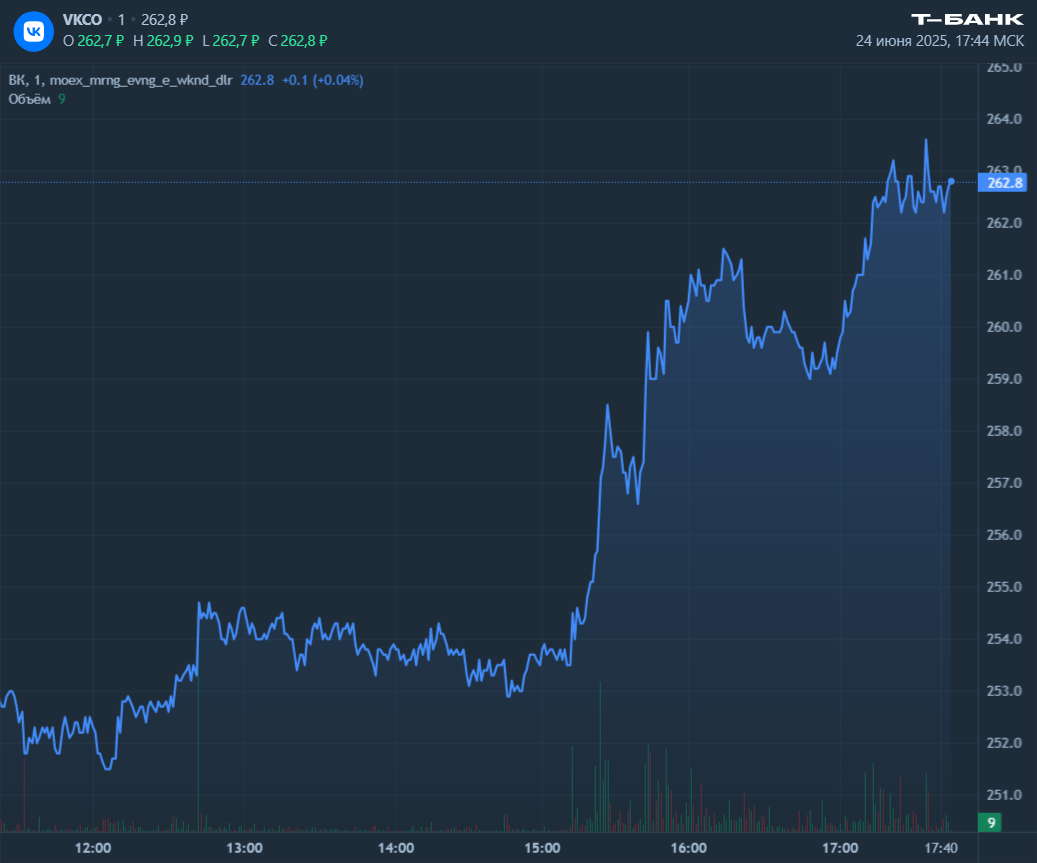 После новостей о подписании закона о национальном мессенджере акции VK в числе лидеров роста на Мосбирже, прибавляя примерно на 3,75%.