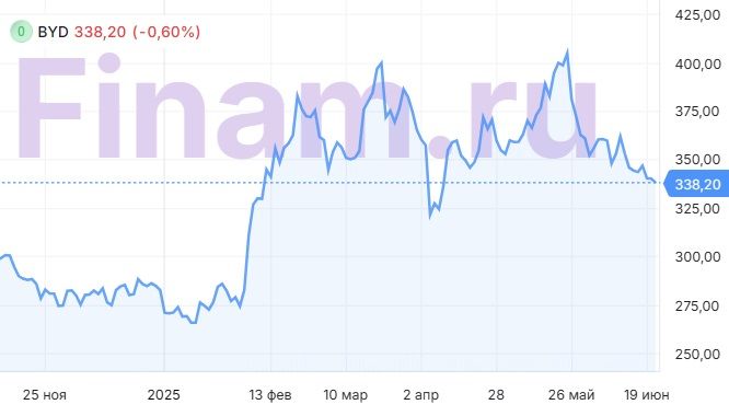 За последний год акции BYD прибавили в цене 35,3%. Во второй половине мая на фоне сильных результатов в I квартале 2025 г. бумага перевалила за 400 юаней, однако уже 26 мая, после объявления BYD скидок на автомобили, акции компании покатились вниз. Сейчас на сектор давит ожесточенная ценовая война.