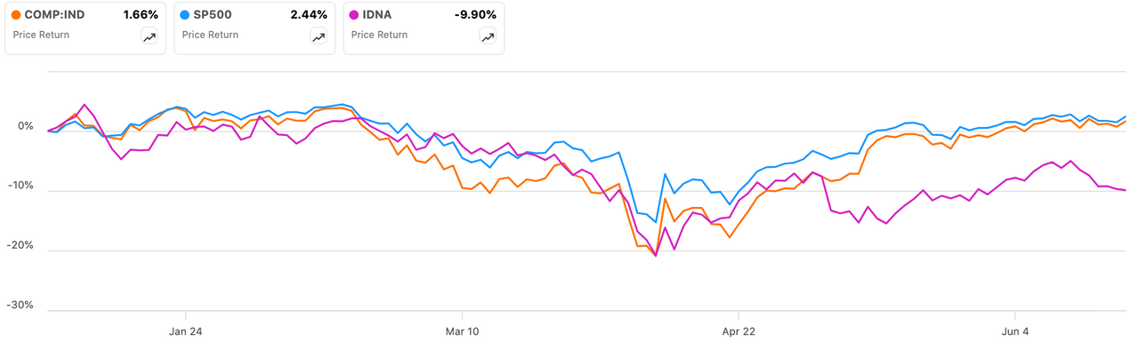 Динамика доходности Ishares Genomics Immunology and Healthcare ETF, индексов S&P 500 и Nasdaq Composite YTD