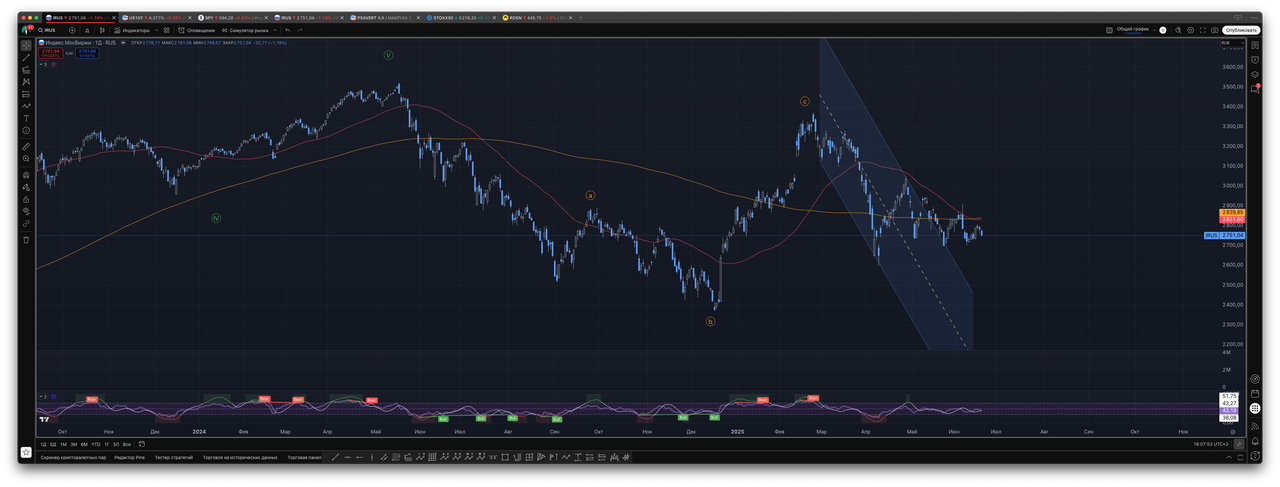 Вторым сценарием является пересчет первых и вторых волн в зигзаге, во время которого открываются цели выше 3100-3200 по индексу ММВБ.