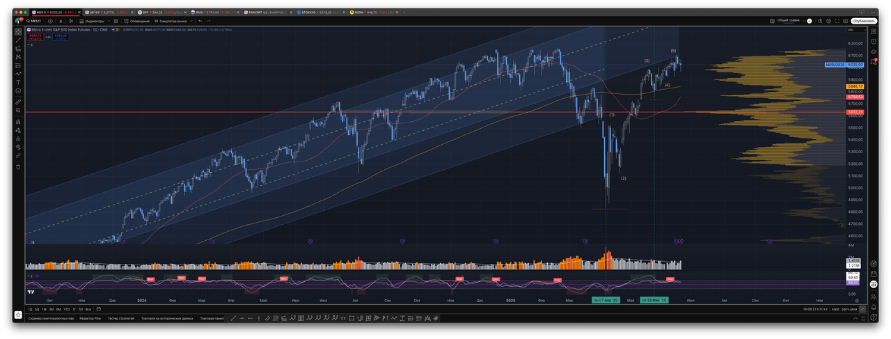 Американский рынок прошлую неделю закрыл на мажорной ноте. Несмотря на появляющиеся дивергенции на дневном фрейме, мы можем показать еще одну финальную волну роста перед началом коррекции.