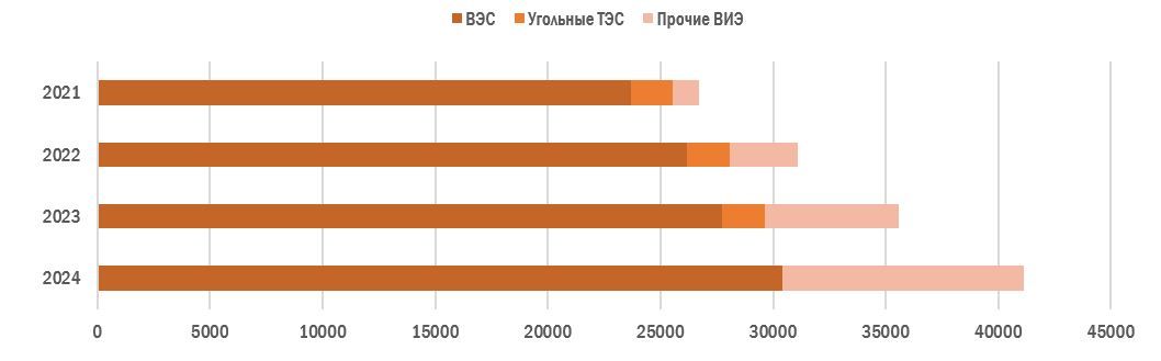 Расширение установленных мощностей остается ключевым драйвером роста China Longyuan Power: в 2024 году суммарные мощности увеличились на 7,5 ГВт, до 41,1 ГВт, при этом основной прирост обеспечили солнечные станции (+4,8 ГВт г/г), что нашло отражение в увеличении генерации СЭС (+72,1% г/г). Дальнейшее расширение генерирующих мощностей создает основу для роста выручки.