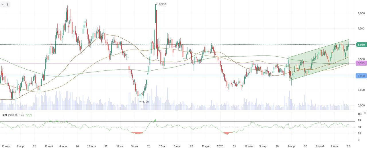 На дневном графике акции China Longyuan Power сформировали восходящий канал, в рамках которого они движутся с начала апреля. В краткосрочной перспективе сохраняется вероятность продолжения движения внутри данной фигуры.
