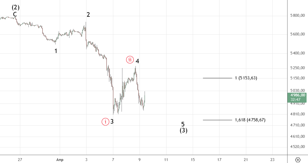Идем на 4758. Красным более медвежья альтернатива: сделали только ((i))-((ii)) в 3 . Тогда цель для (3) — 4120