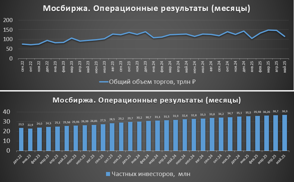 Физических лиц, имеющих брокерские счета на Мосбирже 36,9 млн чел (+16% г/г).