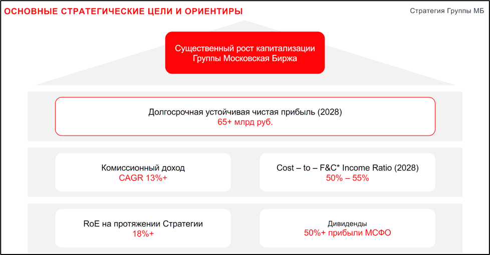 27.09.23 Мосбиржа приняла новую стратегию развития до 2028 года, которая предполагает «существенный рост капитализации» при долгосрочной устойчивой прибыли свыше 65 млрд. При этом ЧП 2024 = 79 млрд. Т.е. в компании ожидают снижение ЧП.
