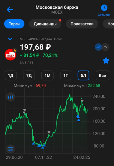 В начале 2025 года я зафиксировал 25% прибыли по акциям Мосбиржи за 3 месяца. На данный момент у меня нет акций Мосбиржи в портфеле, т.к. не вижу очевидного дисконта и дивиденды на данный момент не очень привлекательные