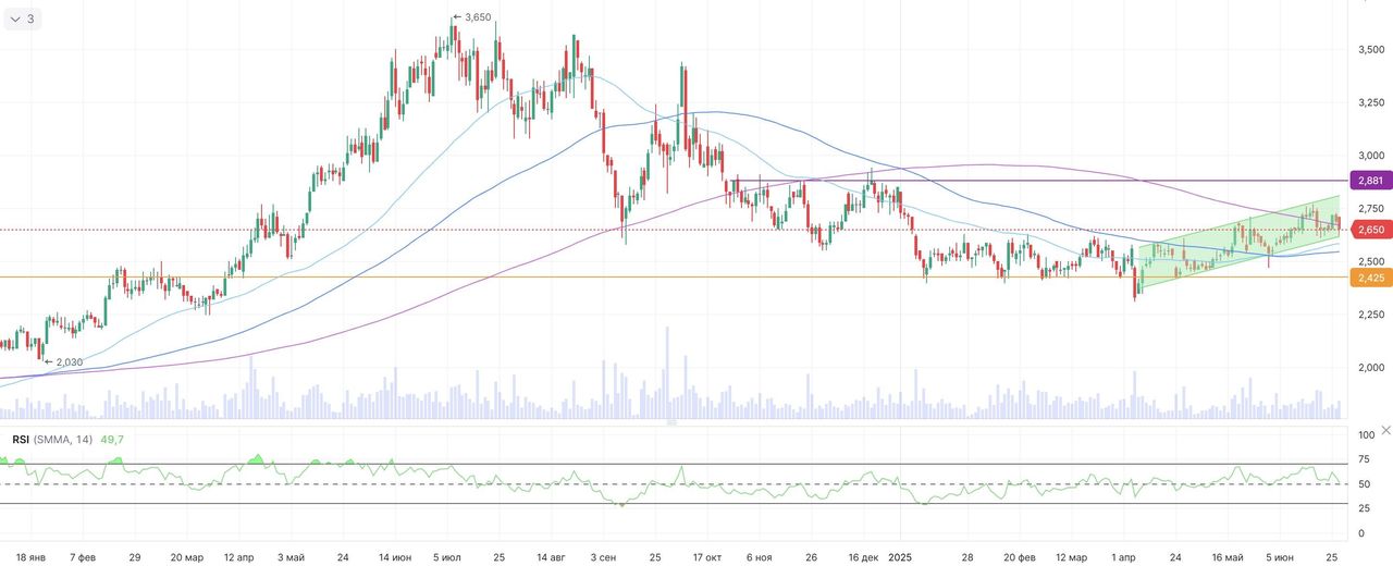 С точки зрения технического анализа в начале 2025 года котировки CGN Power завершили многомесячное снижение и перешли в фазу консолидации. В апреле сформировался восходящий канал, в рамках которого акции продолжают движение в последние месяцы. Ближайшим препятствием для дальнейшего роста выступает уровень сопротивления в районе HKD 2,88.