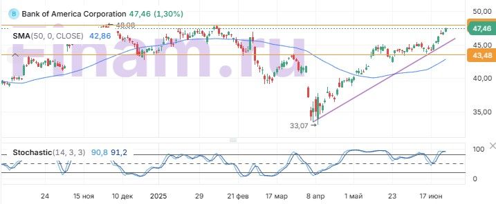 Мы позитивно оцениваем долгосрочные перспективы ведущих американских банков, в том числе и Bank of America. Жесткая торговая политика администрации президента Трампа привела к ухудшению прогнозов по темпам роста ВВП США, однако негативные последствия импортных пошлин для экономики, судя по всему, будут не такими сильными, как опасались ранее, и Штатам все же удастся избежать рецессии. Мы рассчитываем, что благодаря масштабу деятельности, диверсифицированным бизнес-моделям и устойчивым капитальным позициям ведущие кредиторы США смогут уверенно пройти через текущий непростой период, продолжая выигрывать от дальнейшего расширения, хотя и более медленными темпами, экономической активности в стране.