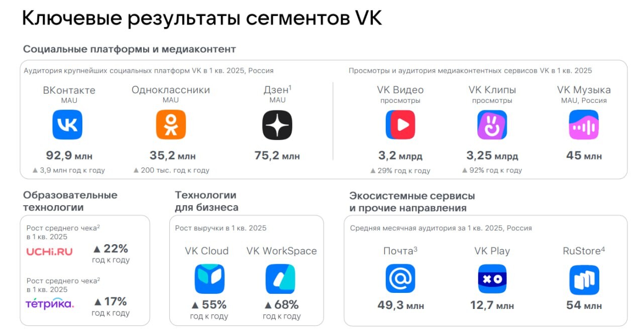 - выручка от VK Tech увеличилась на 64% г/г - до 2,7 млрд руб (планируемое IPO).