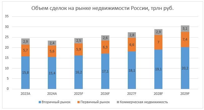 В 2024 году объем сделок на рынке недвижимости России сократился на 5% г/г, до 23,3 трлн руб. Причина снижения заключается в сокращении программ льготной ипотеки с 1 июля 2024 года на фоне высокой ключевой ставки.