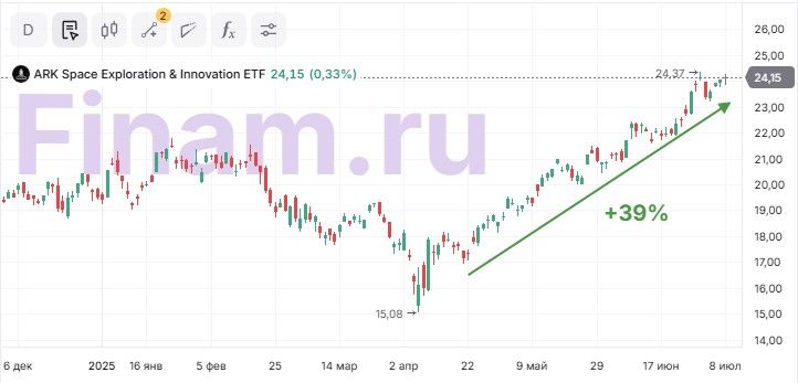 С момента выпуска идеи от 22 апреля 2025 года, акции космического ETF принесли доходность в 39%, достигнув целевой цены за 66 дней. Котировки восстановились после коррекции, связанной с введением США таможенных пошлин в начале года. Одним из важнейших драйверов роста фонда послужил кейс Rocket Lab, благодаря высокой частоте запусков, контракту с Европейским космическим агентством и ожидаемому выводу на рынок новой ракеты Neutron. Разработка этой ракеты, предназначенной для более тяжелых грузов, открывает путь к новым дорогостоящим контрактам.
