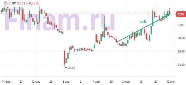 С момента выпуска идеи от 23 мая 2025 г. и по настоящий момент акции CITIC Securities принесли инвесторам доходность в размере 8%. Поддержку им оказывали общее улучшение настроений на биржах материкового Китая и Гонконга, а также ожидания, что компания продолжит демонстрировать уверенные финансовые показатели на фоне в целом неплохой ситуации в экономике и на финансовых рынках в Поднебесной, а также мягкой монетарной политики китайского ЦБ. Несмотря на неплохой рост за последние недели, акции CITIC Securities, на наш взгляд, все еще обладают заметным потенциалом для дальнейшего укрепления. Мы подтверждаем целевую цену данных бумаг на уровне CNY 30,05 и рейтинг «Покупать», остаточный апсайд равен 9%.